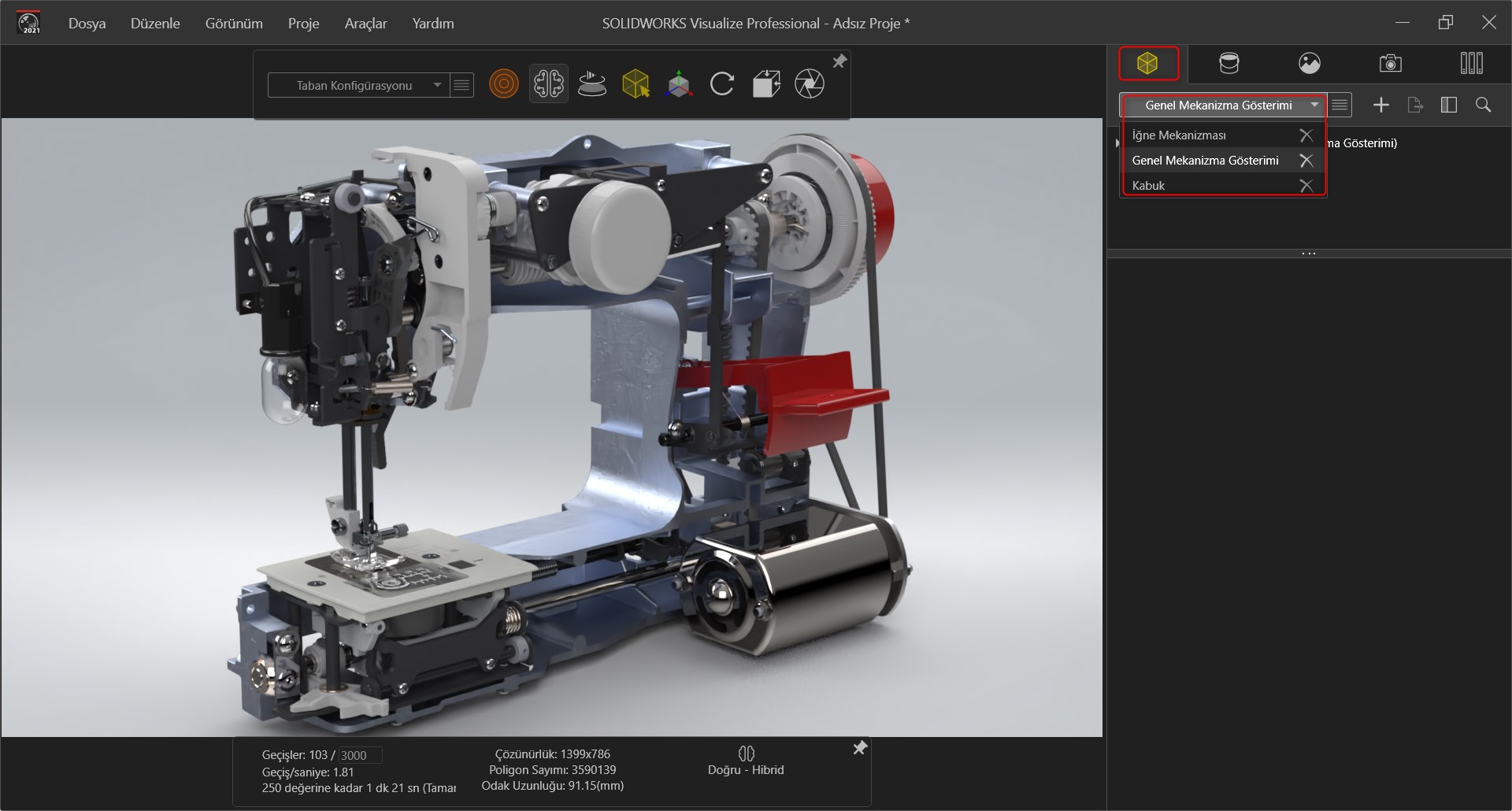 SOLIDWORKS modellerinizi Visualize’a aktararak gerçekçi animasyon ve görseller elde ediyorsunuz. Model konfigürasyonlarını Visualize’a aktarma işlemi 2021 sürümünden itibaren sorun olmaktan çıkıyor. SOLIDWORKS Visualize 2021 konfigürasyonların herhangi birini veya tamamını aynı görselleştirme projesine eklemek mümkündür. SOLIDWORKS modelinizden Visualize ‘a konfigürasyon aktarma işlemi için aşağıdaki adımları takip edebilirsiniz.
